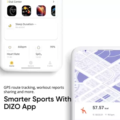 You can download the DIZO app and take advantage of multiple sports features, such as Daily, Weekly, and Monthly Exercise Reports, Workout Reports Sharing, and GPS Running Route Tracking.