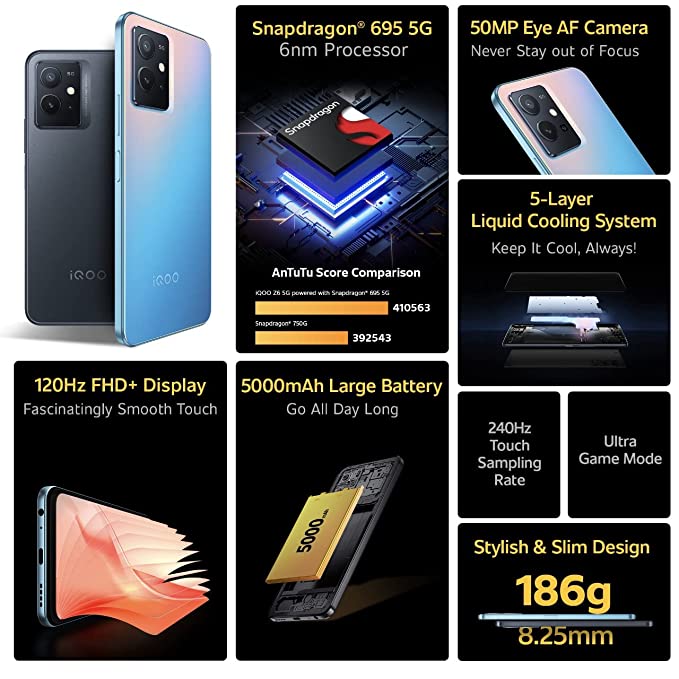 Snapdragon 695 5G Mobile Platform allows you to level up your performance with efficient 6nm Process, with an ANTUTU Score of 410563. Also, we get a 15% improved CPU performance & improved 30% GPU performance (As compared to Snapdragon 690G)