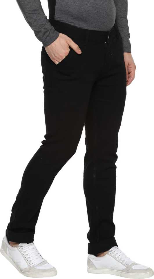 Cotton Lycra with Stretch, Stylish Solid Style Black Jeans, Wash Care – Mild Wash ; Wash dark colors separately Disclaimer – There may be slight variation in shade and colour due to photographic effects and monitor settings, Slim Fit ; Mid-Rise ; Regular Length ; Zip Fly with Buttoned Closure, Perfect for Casual, Party & Office Wear